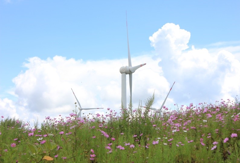 位于云南省西雙版納州勐海帕頂梁子風(fēng)電場將節(jié)能、生態(tài)、環(huán)保的理念滲透建設(shè)全過程中,成為中國風(fēng)電行業(yè)首個“綠色環(huán)保標(biāo)桿風(fēng)電場”。建設(shè)期,中廣核利用原有村組簡易路、森林防火通道,有效保護(hù)原有自然植被,做到風(fēng)電發(fā)展與環(huán)境相融。同時,風(fēng)電場區(qū)內(nèi)廣泛種植適應(yīng)當(dāng)?shù)厣鷳B(tài)條件的三角梅、櫻花、波斯菊等觀賞花,形成觀光區(qū)域,慕名而來的游人絡(luò)繹不絕,成為西雙版納州內(nèi)乃至整個云南省居家郊游的勝地。